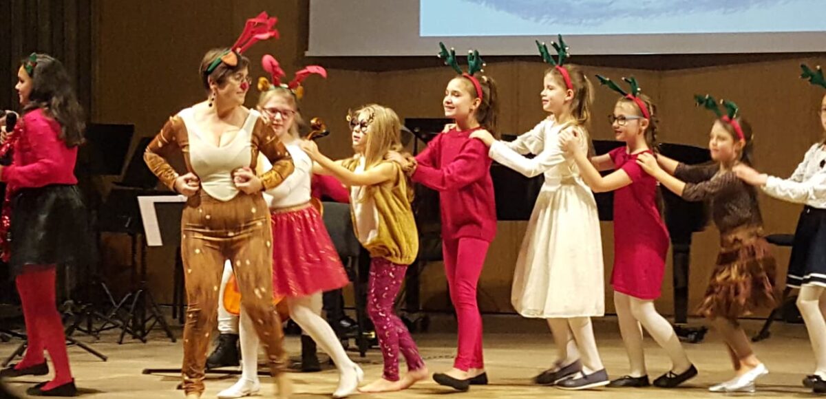 W sobotę 21 grudnia odbył się drugi w tym roku koncert z cyklu „Scena dla młodych” zatytułowany „Coraz bliżej święta”. Uczniowie Sekcji Instrumentów Smyczkowych, Gitary i Harfy wprowadzili publikę w świąteczny nastrój wykonując kolędy, pastorałki i utwory kojarzone właśnie ze Świętami Bożego Narodzenia (np. „We wish you a Merry christmas”). Gościnnie wystąpili uczniowie klas rytmiki pań : Eweliny Łaguny i Marzeny Kamińskiej, a także uczennice klas fletu pani Hanny Brzozowskiej. Koncert nastrojowo rozpoczęła orkiestra gitarowa pod kierunkiem pani dyrektor Joanny Rutkowskiej, wykonując Largo z „Zimy” A.Vivaldiego, partię solową wykonała Maria Pańczyk. Koncert zakończył występ zespołu „Doliwiaczi” piosenką z filmu „Rudolf czerwononosy”. Koncert prowadziła kierownik sekcji-Katarzyna Doliwa-Dobrowolska.